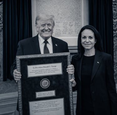 During the White House ceremony, Machado framed her gesture in historical terms, invoking the shared legacy of revolutionary leaders Simón Bolívar and George Washington. "The bond between our country and the United States in our shared struggle for freedom against oppression," she stated, adding that "200 years later, the people of Bolívar are returning a medal to the heir of Washington—in this instance, a Nobel Peace Prize medal—as a tribute to his unique commitment to our freedom".